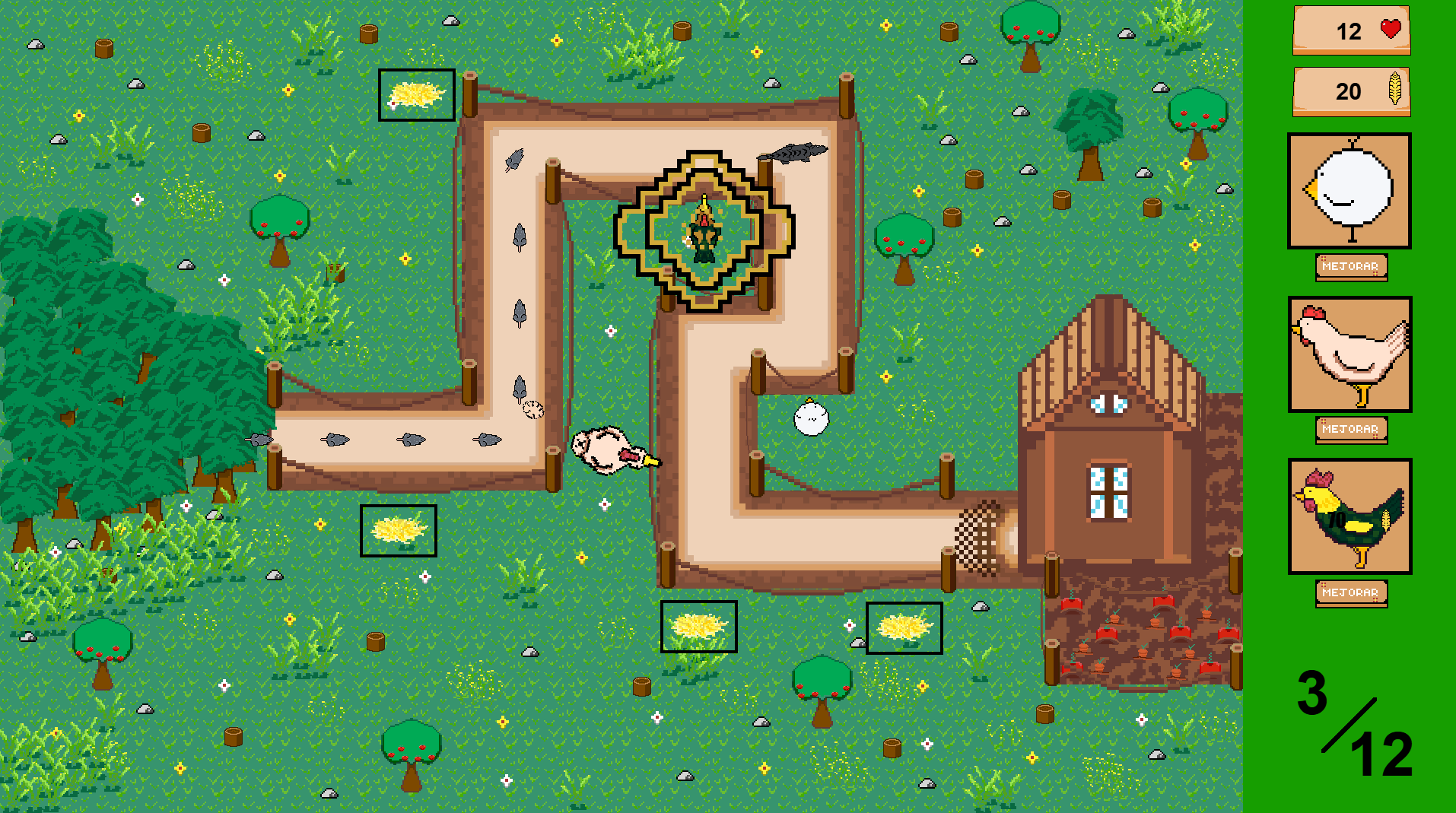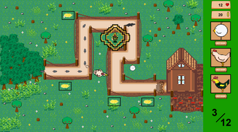 Nature's wrath has been unleashed upon us! Well... upon our chicks! Help the farm defend itself against wolves, eagles, and wolves in this simple and short tower defense game.